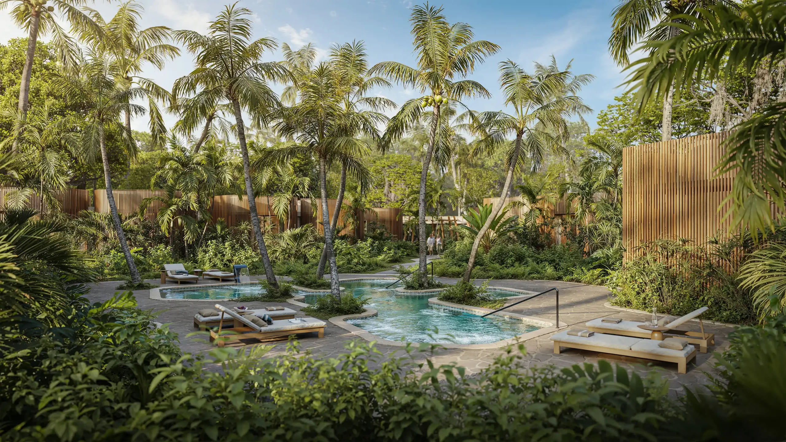 El complejo dispondrá de un spa con áreas de wellness, yoga, fitness, vapor, saunas y albercas, cuyo diseño presenta estructuras hexagonales que emulan el patrón de la cáscara de la piña, ya que su cultivo ha sido un oficio tradicional pasado de generación en generación en la región. Estas estructuras interconectadas se disponen alrededor de un abundante jardín tropical con elementos acuáticos como lagunas y albercas, lo que realza el ambiente sereno del spa.