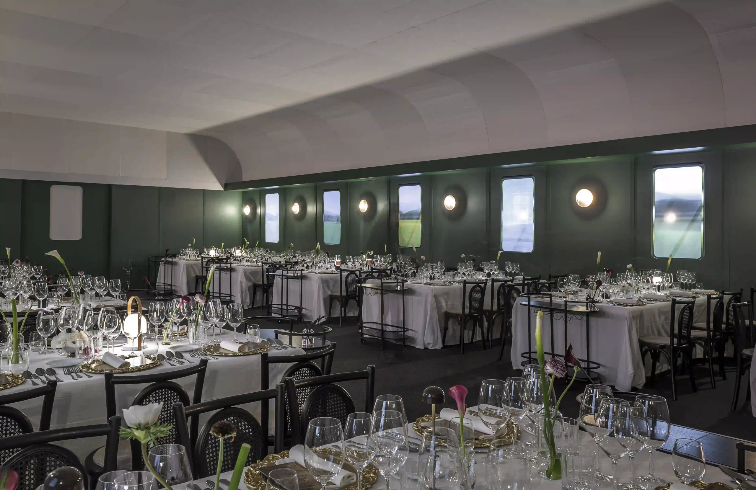 RESTAURANTES: Un momento único para que las empresas pueden compartir con sus invitados una irrepetible comida. Cada mesa tiene una capacidad de 8 personas. Creamos 6 espectaculares restaurantes efímeros de la mano de los mejores arquitectos e interioristas del país. En cada restaurante contaremos con un menú degustación de 6 tiempos con 4 vinos elaborado por 3 chefs. Cada chef elabora dos platillos